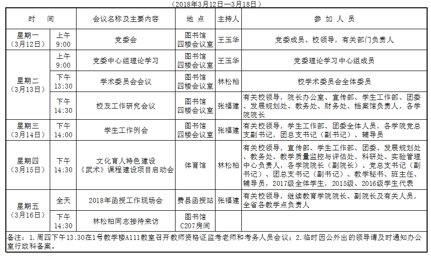 第一周会议(活动)表
