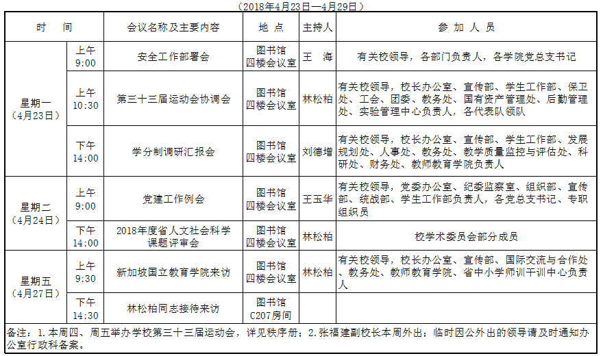 第七周会议(活动)表