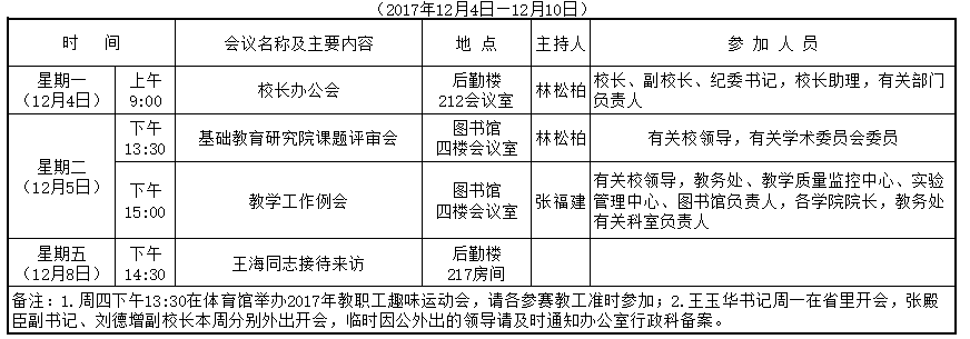 第十六周会议(活动)表