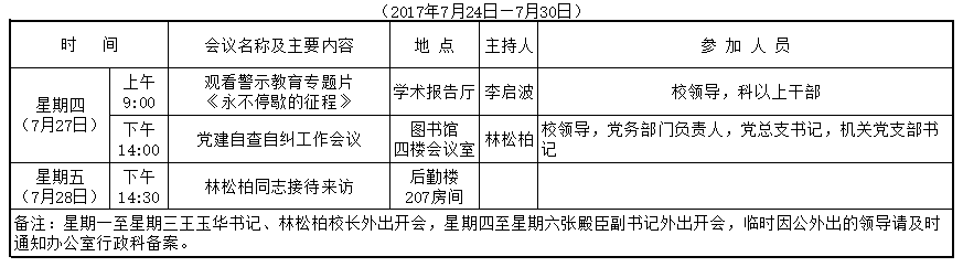 暑假第三周会议(活动)表