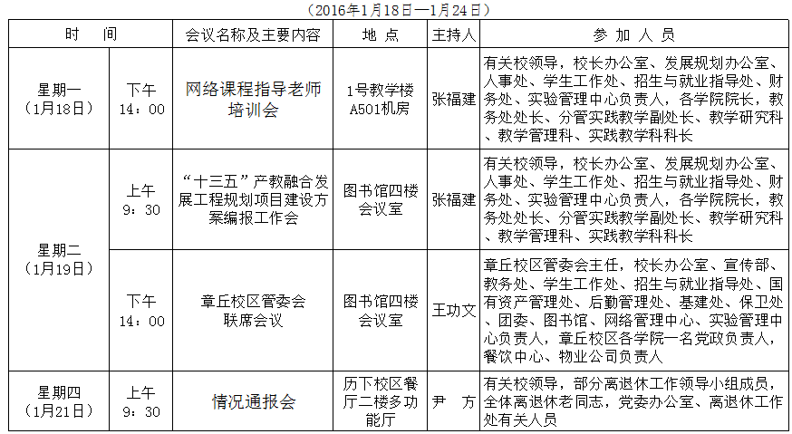 第二十周会议(活动)安排表