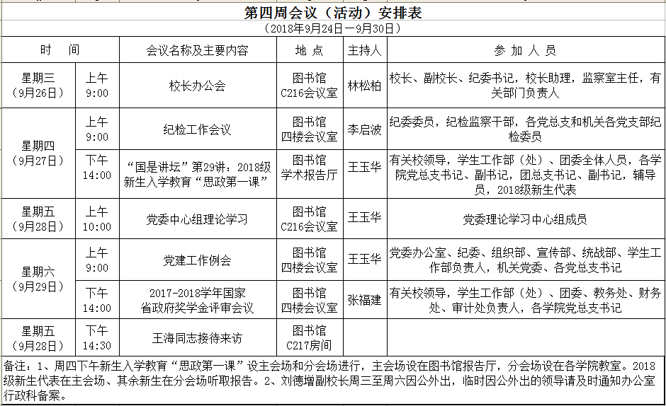 第四周会议(活动)安排表