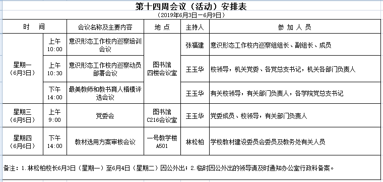 第十四周会议(活动)安排表