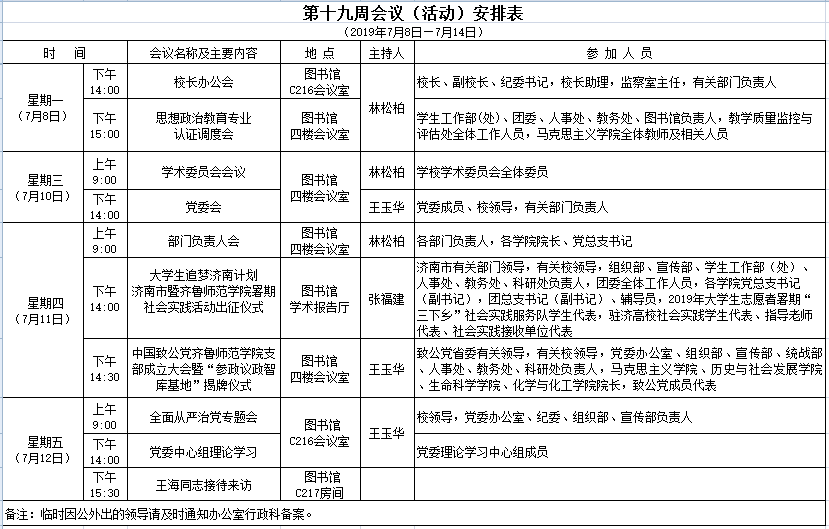 第十九周会议(活动)安排表