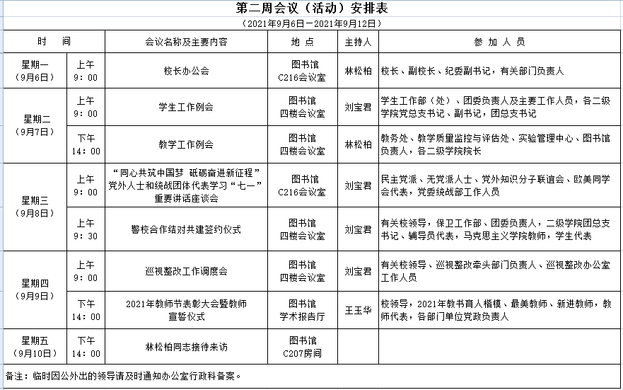 第二周会议(活动)安排表