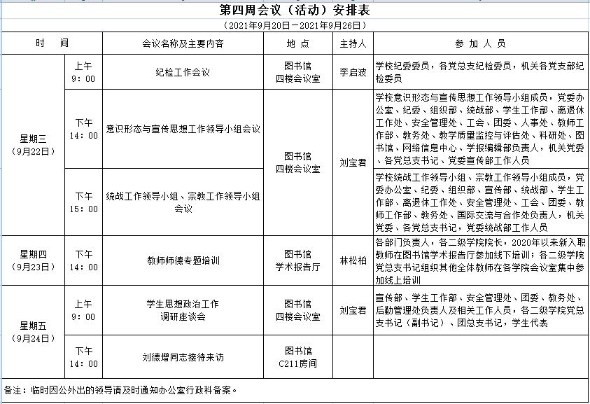 第四周会议(活动)安排表