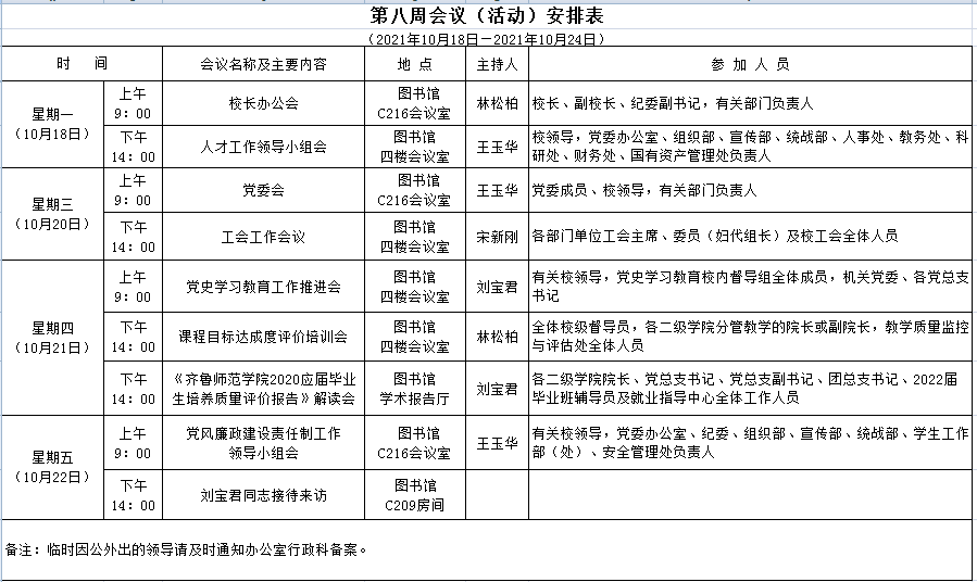 第八周会议(活动)安排表
