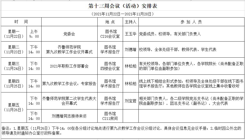 第十三周会议(活动)安排表