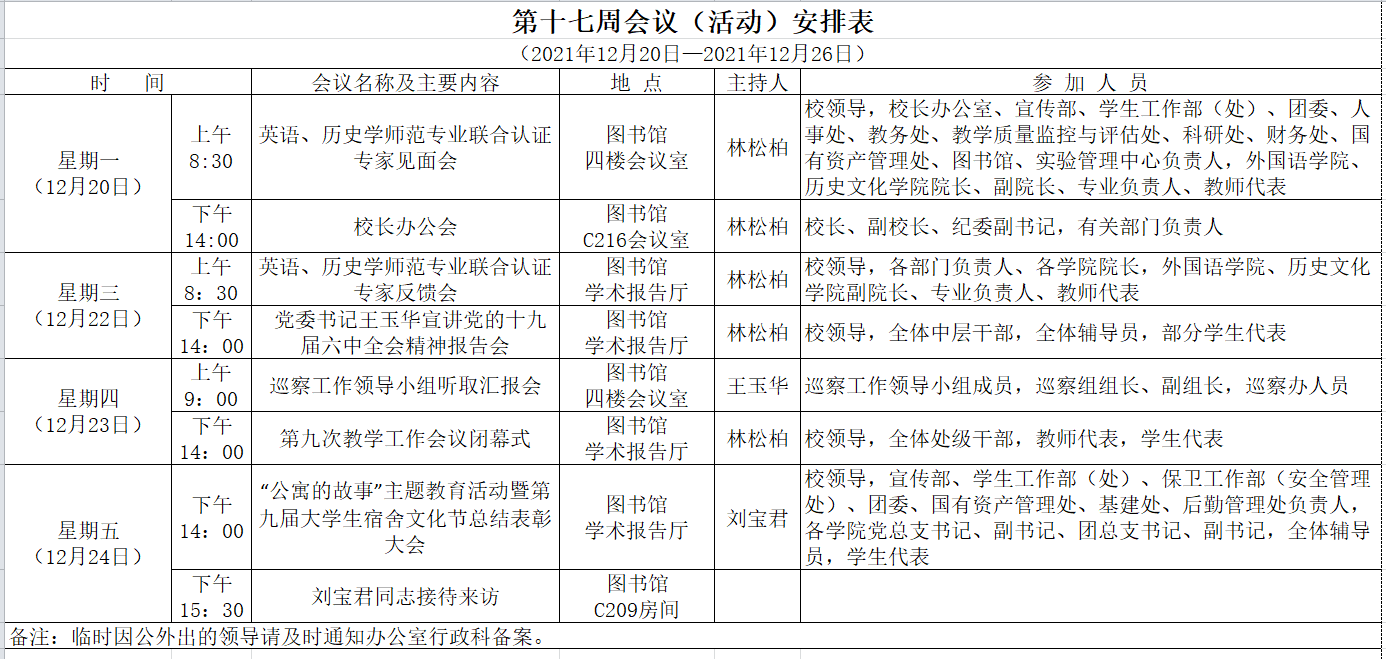 第十七周会议(活动)安排表