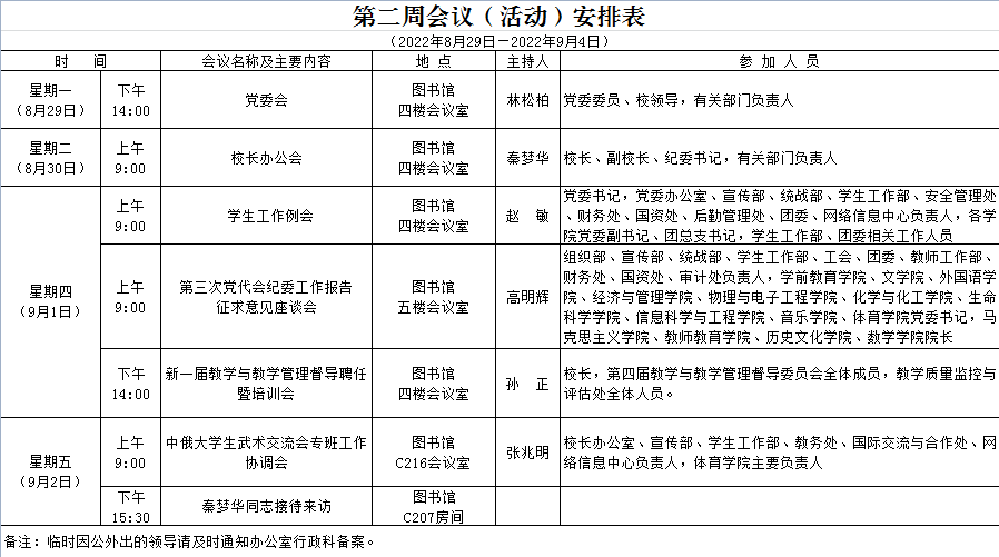 第二周会议(活动)安排表