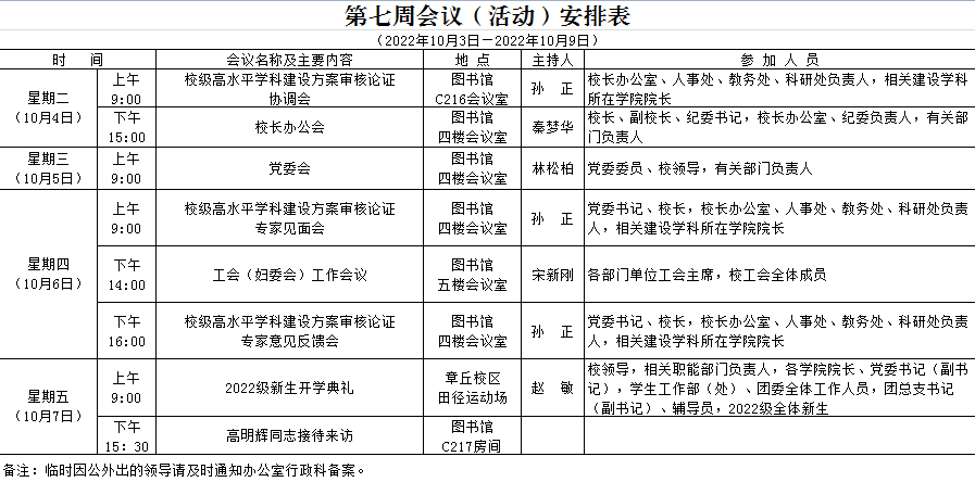 第七周会议(活动)安排表