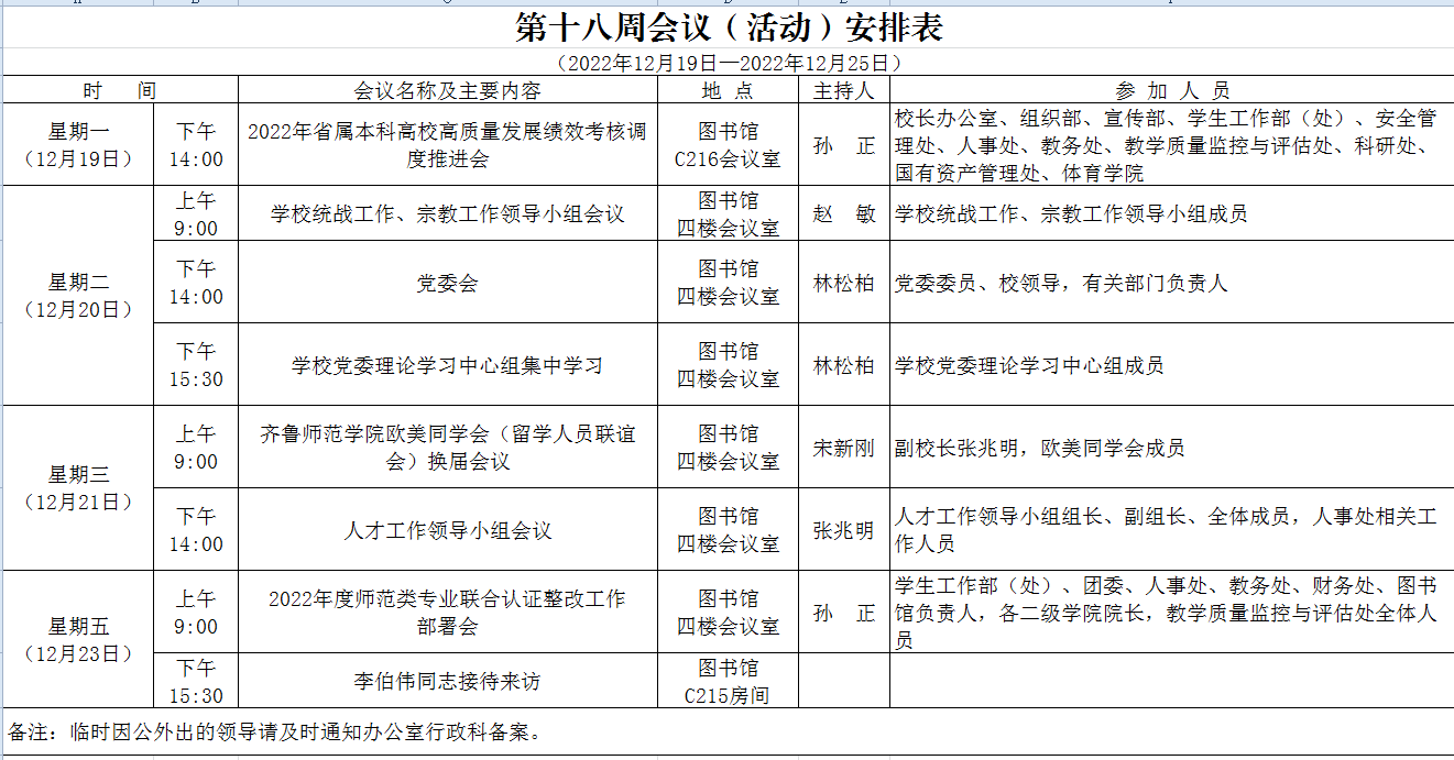 第十八周会议(活动)安排表