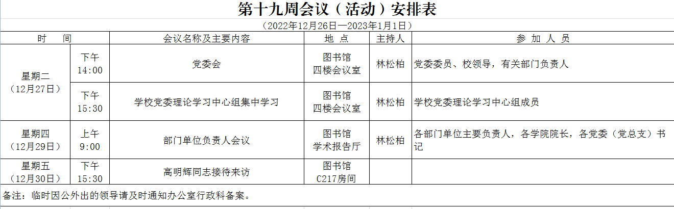 第十九周会议(活动)安排表