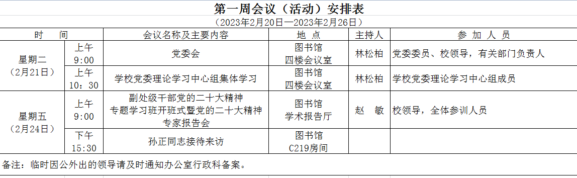 2022-2023学年第二周会议(会议)安排表