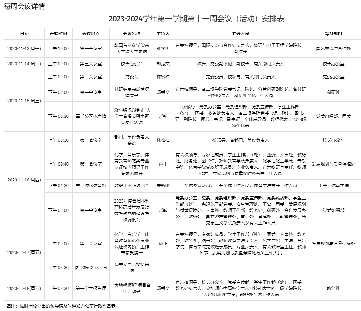 2023-2024学年第一学期第十一周会议(活动)安排表