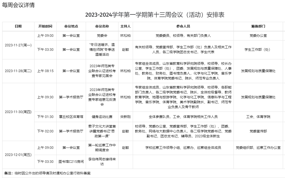 2023-2024学年第一学期第十三周会议(活动)安排表