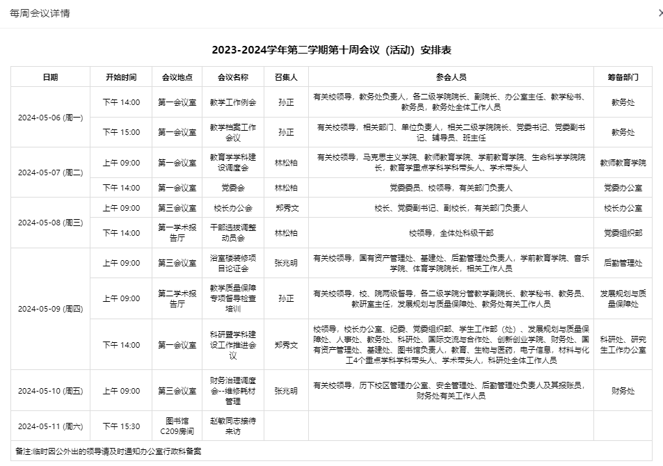 2023-2024学年第二学期第十周会议(活动)安排表