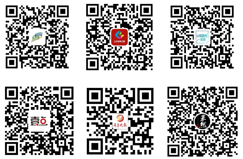 (二)网络端:通过扫描以下二维码,进入“山东教育发布”“山东教育电视台”“山东高考一点通”微信公众号,在“直播点播”中,打开“齐鲁大讲坛——开学第1讲”观看;或者扫码进入齐鲁壹点直播间、齐鲁晚报新浪微博官方账号主页,以及齐鲁壹点·果然视频快手号主页观看。