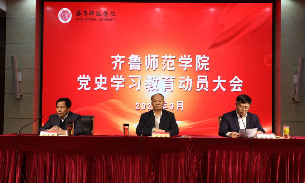 3月26日上午,齐鲁师范学院在章丘校区图书馆学术报告厅召开党史学习教育动员大会。大会任务是深入学习贯彻习近平总书记在党史学习教育动员大会上的重要讲话精神,按照中央和省委部署安排,对学校开展党史学习教育进行动员部署。