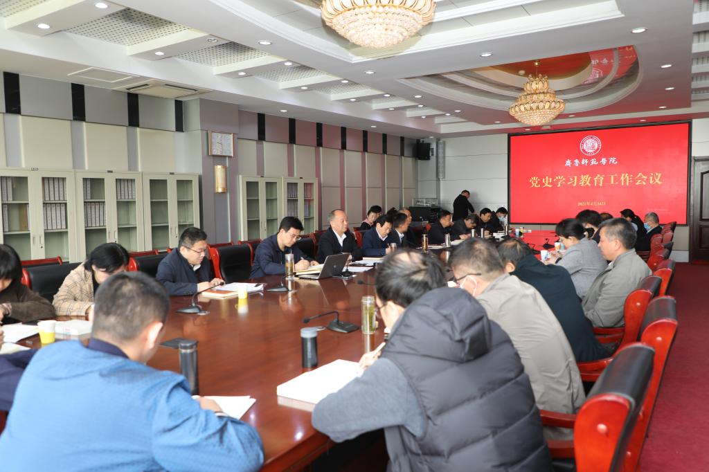 4月16日上午,学校在章丘校区图书馆四楼会议室召开党史学习教育工作会议,对学校党史学习教育进行调度和部署。党委书记王玉华出席会议并讲话,党委副书记刘宝君主持会议,党委委员、党委组织部部长李伯伟,学校党史学习教育领导小组办公室有关人员以及机关党委、各党总支书记参加会议。