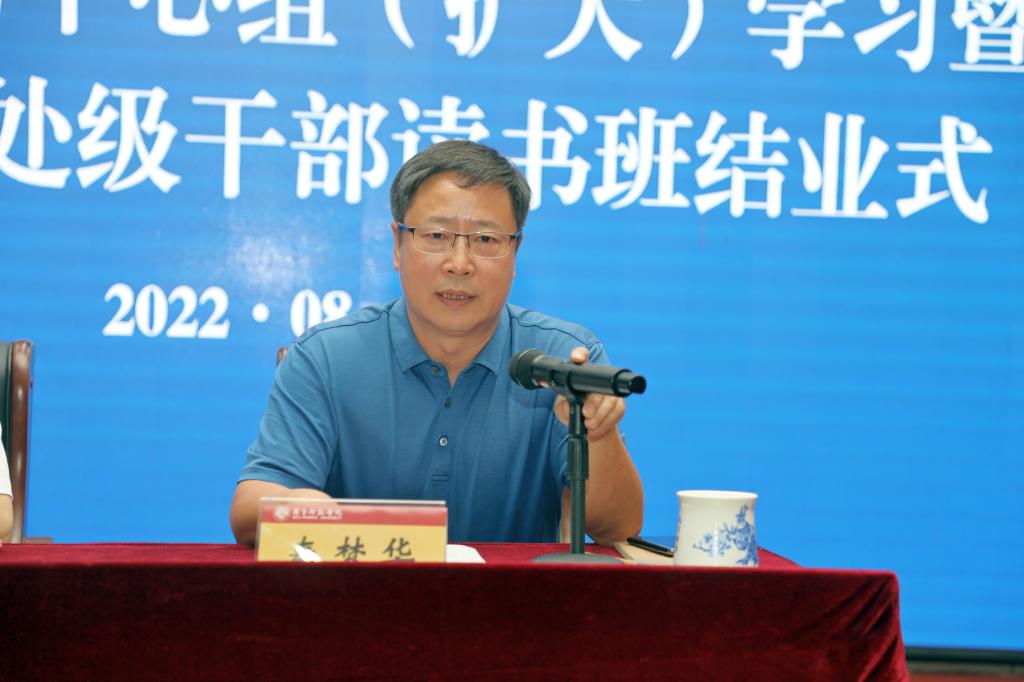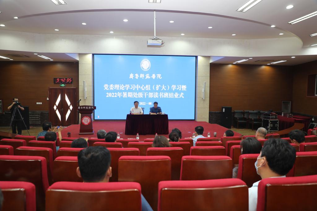 8月17日上午,学校党委理论学习中心组(扩大)学习暨2022年暑期处级干部读书班结业式在章丘校区图书馆报告厅举行。学校党委书记林松柏主持结业式,党委副书记、校长秦梦华作讲话。学校领导及全体处级干部参加结业式。