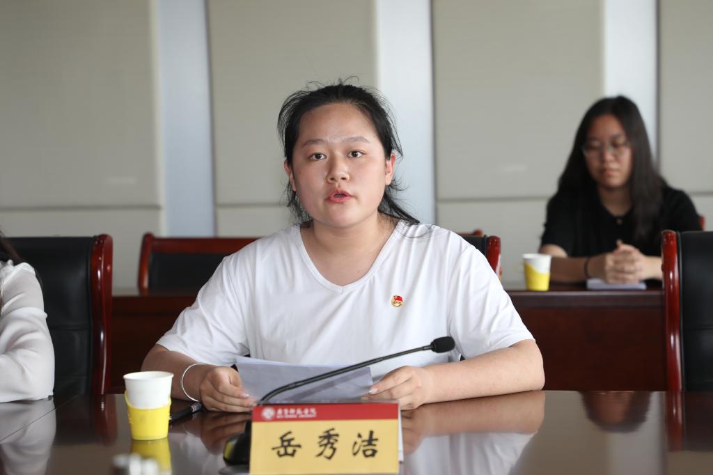 在汇报发言环节,团委书记孔庆松、经济与管理学院团总支书记高超、生命科学学院团总支书记张宏熙、学前教育学院学生岳秀洁,围绕学习贯彻落实习近平总书记重要讲话精神,联系工作实际,谈心得体会。孔庆松表示,学校团委将把学习贯彻习近平总书记重要讲话精神作为首要政治任务抓在手、悟在心、行在前,闻令而动、听令而为、顺令而行,号召各级团学组织持续广泛开展务实有效的宣传教育活动,汇聚起我校“党管青年”巩固性积累、拓宽性发展、创新性实践的磅礴青春力量。高超表示,要从政治上着眼、从思想上入手、从青年特点出发,紧扣服务青年的工作生命线,千方百计为青年办实事、解难事,主动想青年之所想、急青年之所急,让广大青年真切感受到党的关爱就在身边、关怀就在眼前。张宏熙表示,要承诺践诺、不辱使命,努力做坚定信念、胸怀天下,争做有理想、有追求的共青团干部;做善于学习、勤于学习,争做有技能、有担当的共青团干部;做牢记使命、勇挑重担,争做谋改革、促发展的共青团干部;做解放思想、开拓进取,争做勇创新、敢创业的共青团干部;做修德立行、锤炼品格,争做立师范、当表率的共青团干部。岳秀洁表示,我们要谨遵习近平总书记对新时代青年学子的谆谆告诫和殷殷嘱托,信念坚定、不忘初心,为使命宗旨“立心”;刻苦学习、敏于求知,为成事做人“立身”;担当实干、砥砺奋斗,为岗位职责“立行;坚持原则、敢于斗争,为同学立场“立言”;严守规矩、不逾底线,为锤炼作风“立德”。