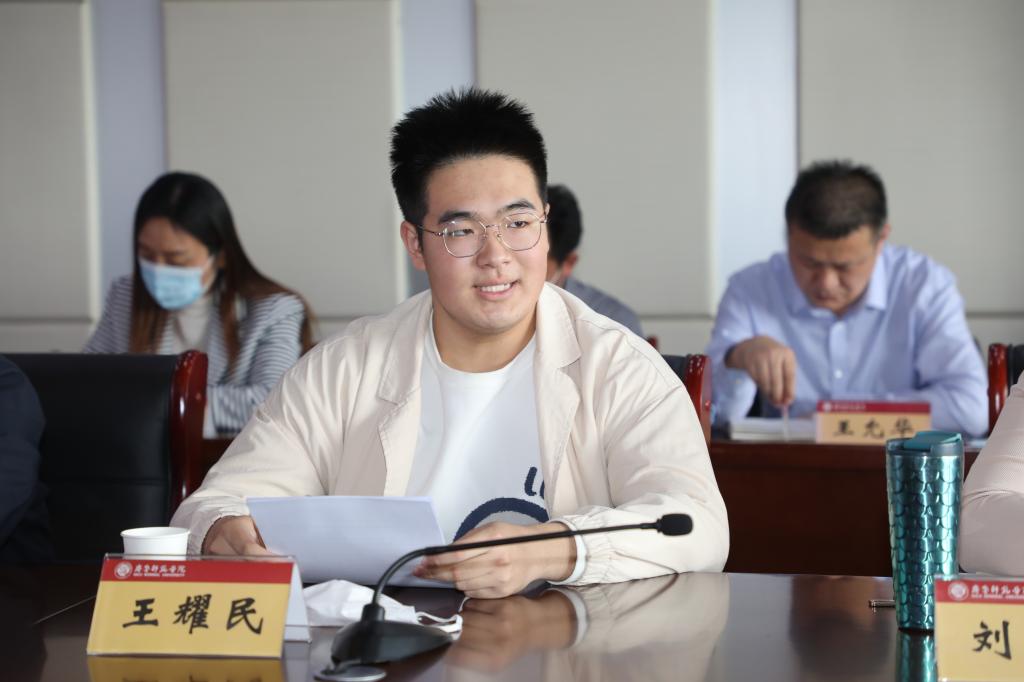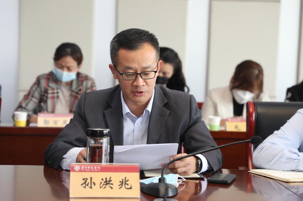 会上,教务处处长孙洪兆、人事处处长杨磊、马克思主义学院思政课教师刘金玲、教师教育学院学生王耀民分别进行了交流发言。孙洪兆表示,学校牢记为党育人、为国育才使命,积极探索新时代教育教学方法,不断提升教书育人本领;始终强调坚持立德树人的根本任务,构建德智体美劳全面发展的人才培养体系;建立应用型人才培养体系,有效提高以“实践性、创新性、综合性和社会性”四个特性为能力表征的培养质量。杨磊表示,学校坚持以教师为中心,以强化教师思想政治素质和师德师风建设为首要,以提高教师专业素质能力为关键,以完善体制机制及创新政策为保障,全面加强教师队伍建设,并就如何抓好高水平人才队伍、中青年骨干教师队伍、思政课教师队伍的建设谈了体会。刘金玲表示,作为一名思政课教师,要坚持立德树人,深刻理解把握思政课的重要地位;坚持讲好道理,深刻理解把握思政课的本质特征;坚持改革创新,深刻理解把握思政课的时代要求,牢记初心使命,树立志业精神,助力青年学子在青春的赛道上跑出最好成绩。王耀民表示,作为新时代的大学生,要以青春姿态迎接挑战,以青春之火、青春之力奋进社会主义新时代,坚定理想信念、提升综合素养、勇于自我革命、自觉担当尽责、投身志愿服务、积极参与实践。