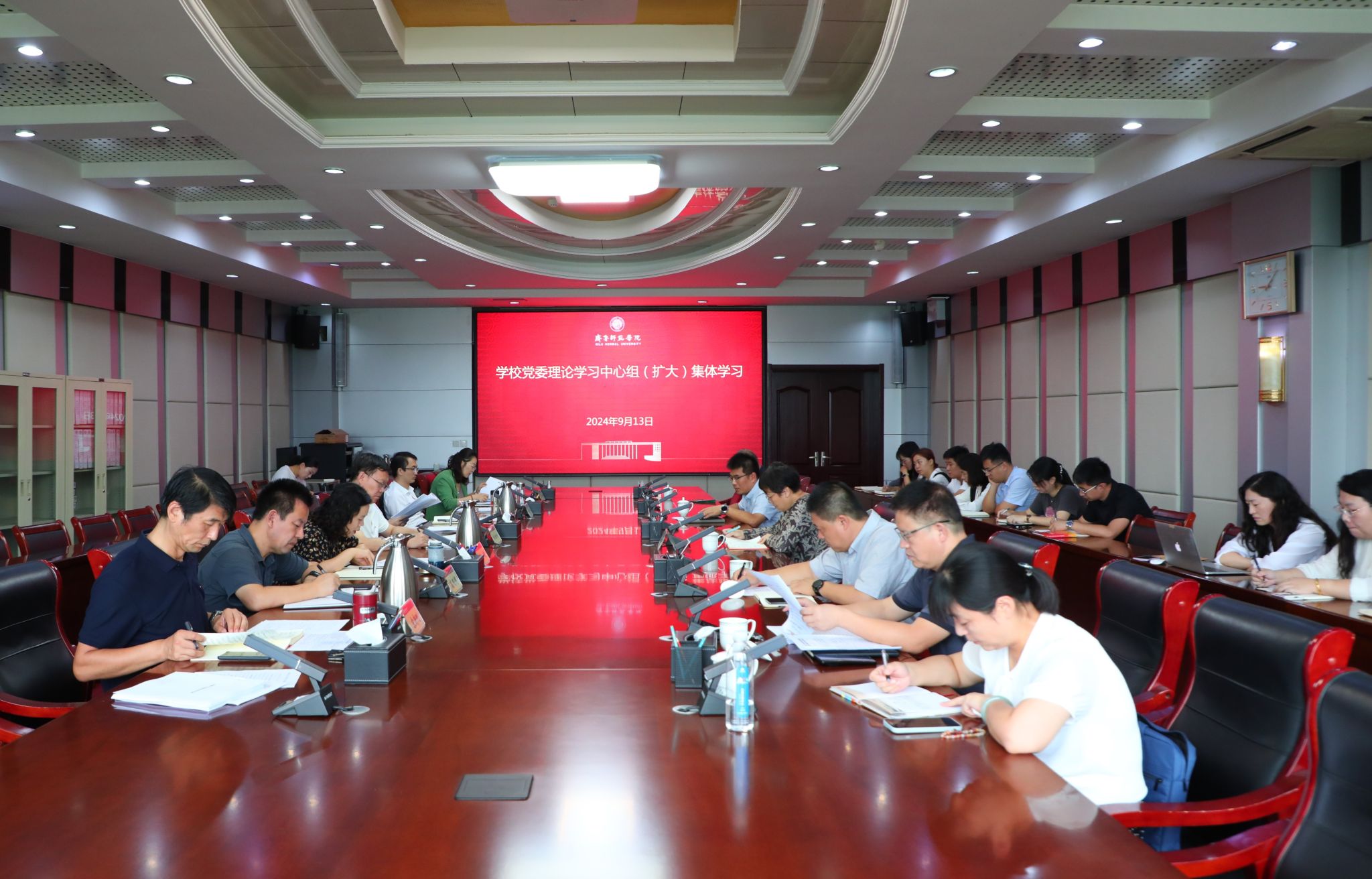 9月13日上午,学校党委理论学习中心组召开(扩大)集体学习会,传达学习习近平总书记在全国教育大会上的重要讲话精神和全国教育大会精神,深入学习贯彻习近平总书记关于大力弘扬教育家精神的重要论述,党中央、国务院《关于弘扬教育家精神加强新时代高素质专业化教师队伍建设的意见》。学习会由党委书记林松柏主持。