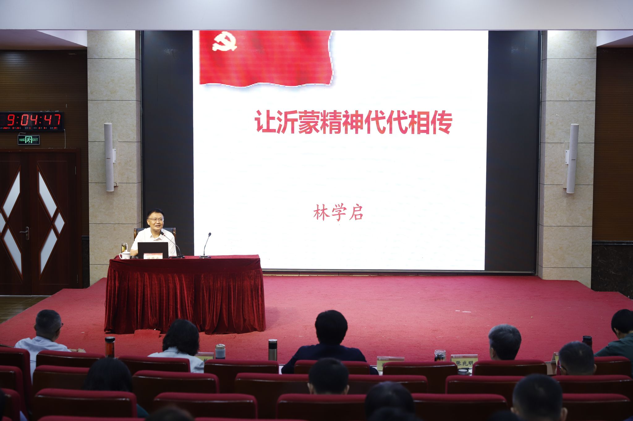 为深入贯彻落实习近平总书记关于大力弘扬沂蒙精神、推动红色基因代代相传重要指示要求,推动沂蒙精神广泛践行,9月26日上午,学校党委理论学习中心组在章丘校区第一学术报告厅举行第11次集体学习(扩大)会暨“沂蒙精神代代传”主题宣讲报告会。山东省委党校(山东行政学院)二级教授、山东沂蒙精神研究会副会长林学启受邀作题为《让沂蒙精神代代相传》的宣讲报告。会议由学校党委副书记赵敏主持。