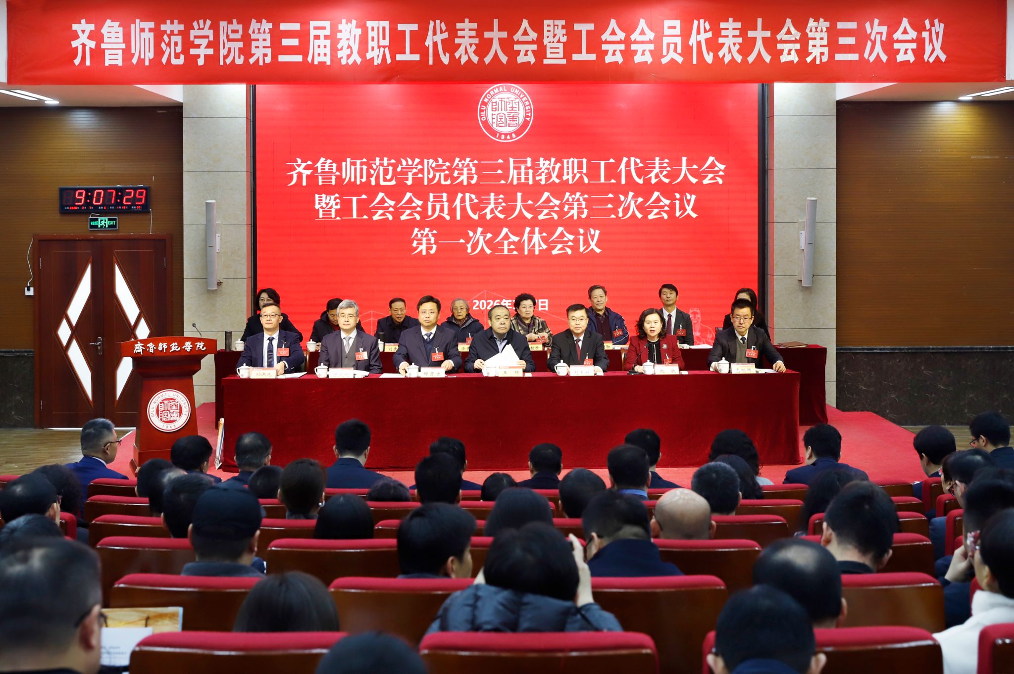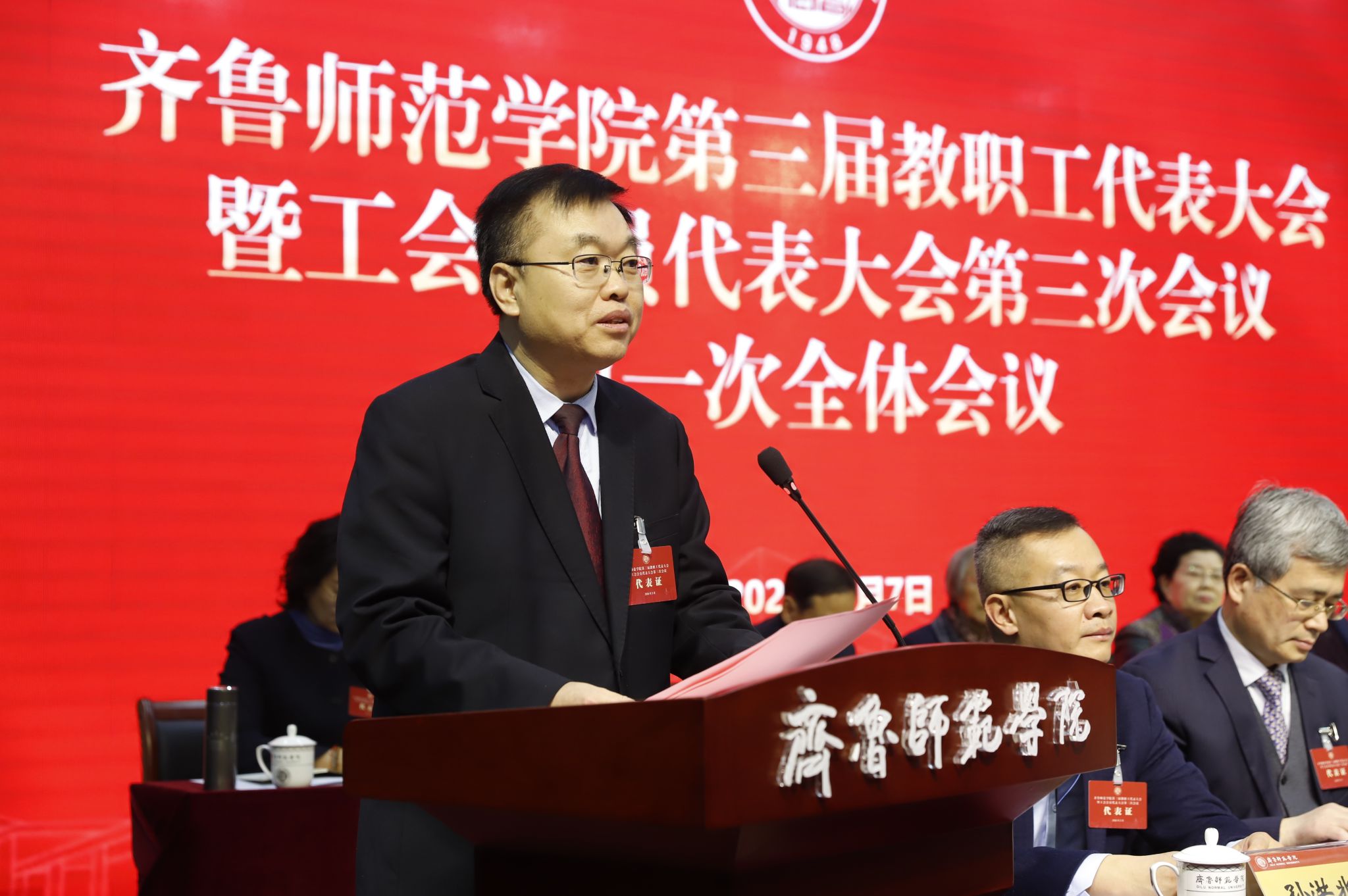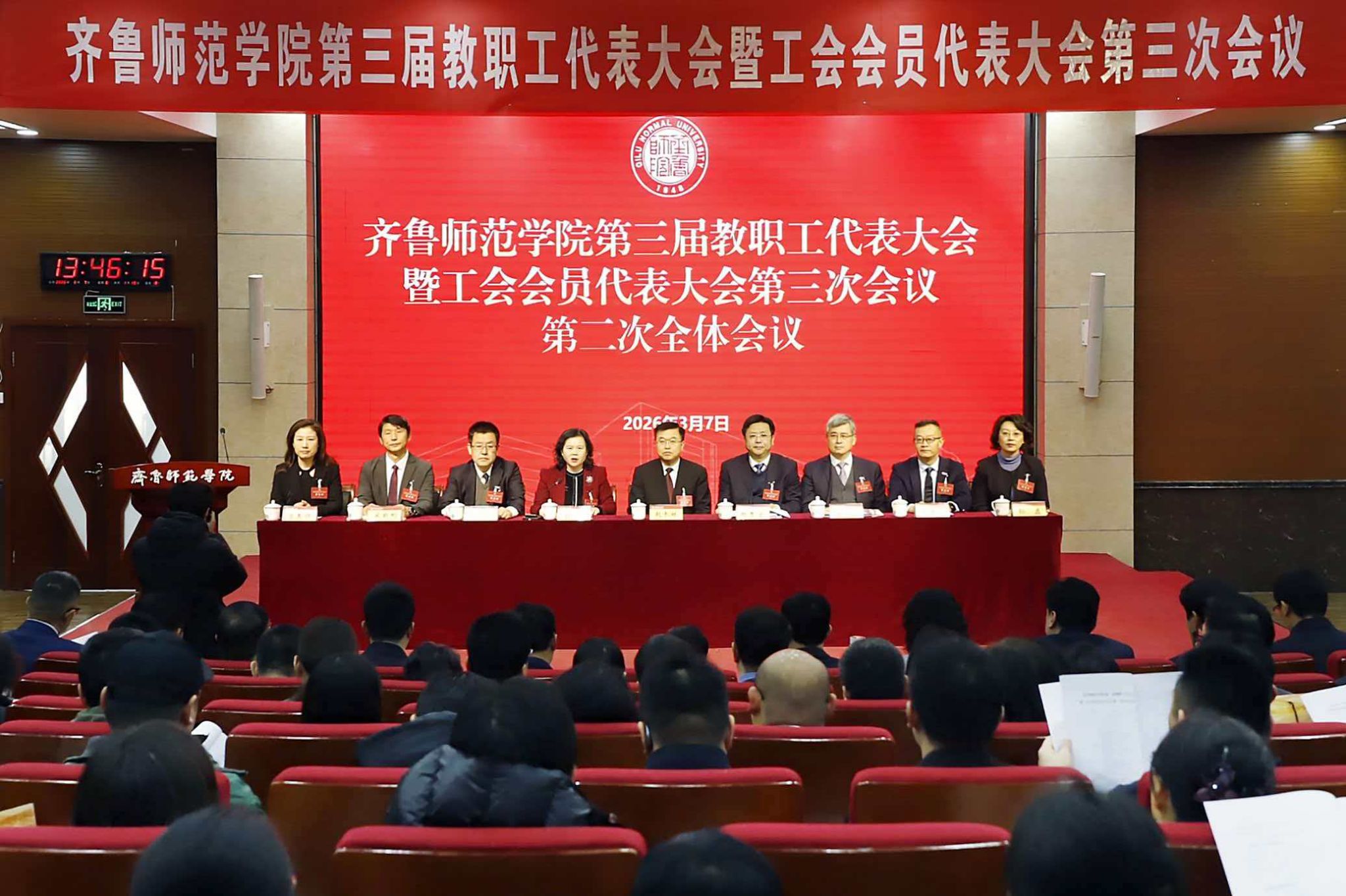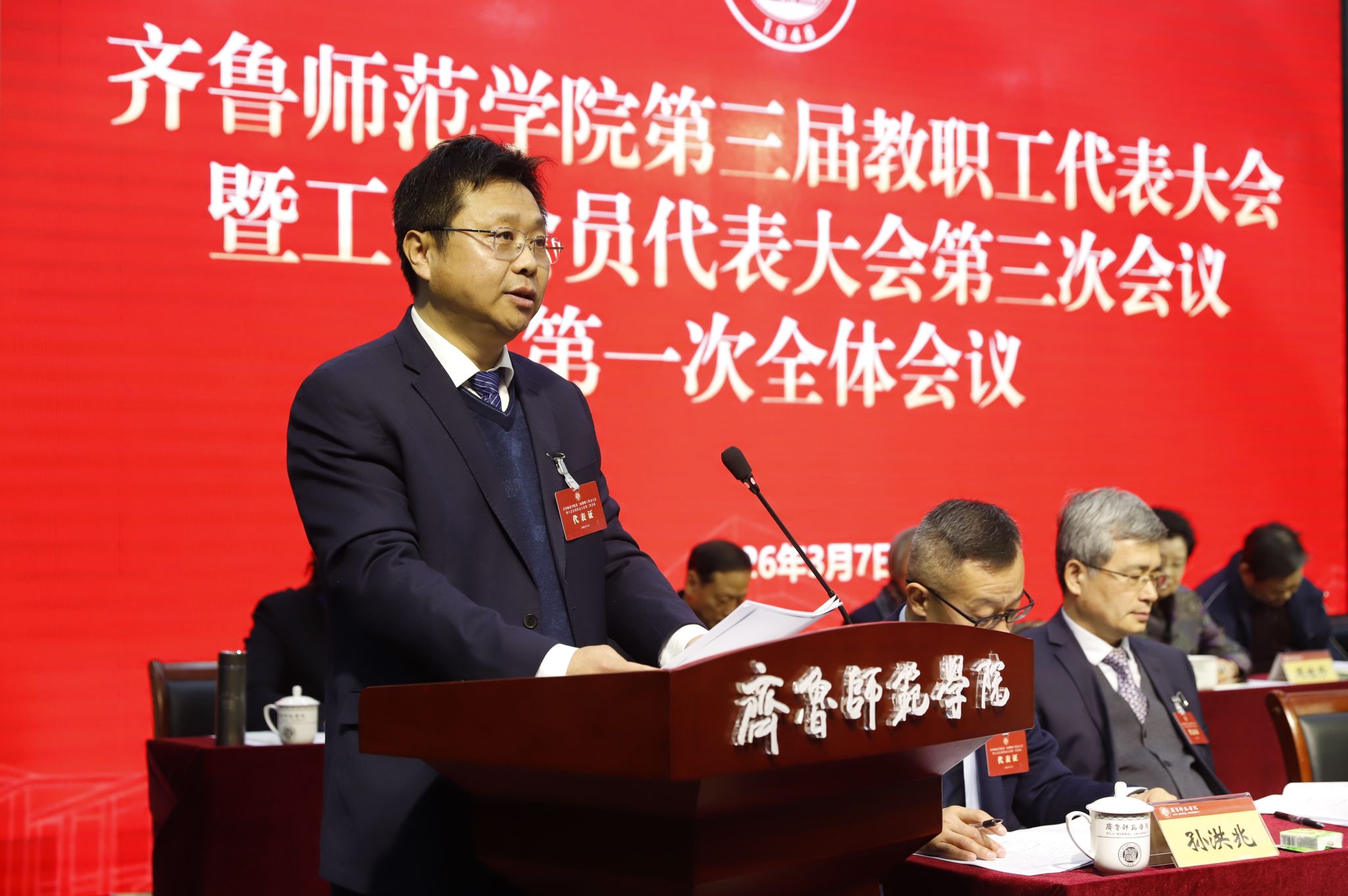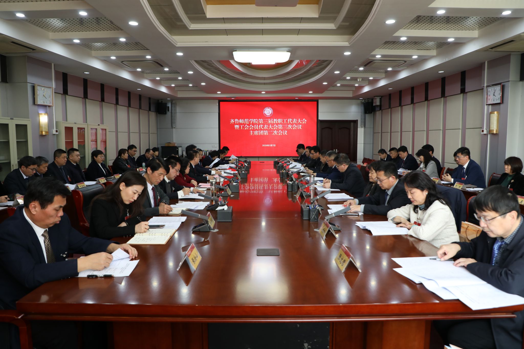 3月7日,齐鲁师范学院第三届教职工代表大会暨工会会员代表大会第三次会议在庄重而热烈的氛围中胜利召开。全校教职工代表共聚一堂,以高度的政治责任感和使命感,共商学校发展大计,共绘事业新蓝图。